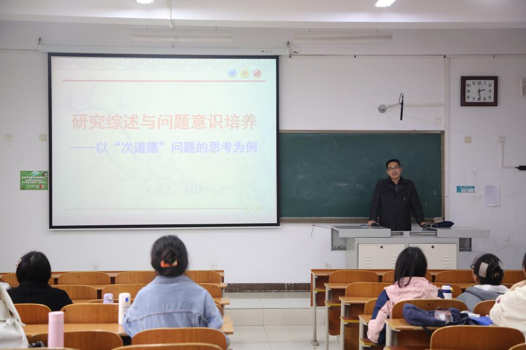 博士生导师赵昆教授深入班级,于S301教室为2020级哲学班学生作了题为《研究综述与问题意识培养—以“次道德”问题的思考为例》的学术讲座。本次活动由2020级哲学班辅导员张文静主持。