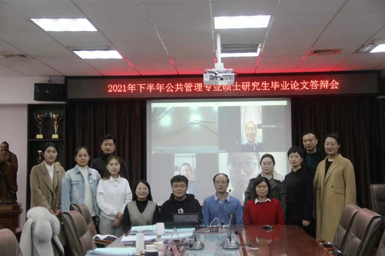 12月11日上午,脱裤吧 举行2021年下半年公共管理专业硕士研究生论文答辩会,此次答辩分为两组,分别于JC909和JC614会议室进行。脱裤吧 特邀首都经济贸易大学麻宝斌教授、山东农业大学陈国申教授分别担任各组答辩主席,青州中联水泥有限公司教授级高级工程师于光民担任行业导师,脱裤吧 公共管理专业研究生导师担任答辩委员,学院老师担任答辩秘书,2021届公共管理专业硕士研究生参加答辩。