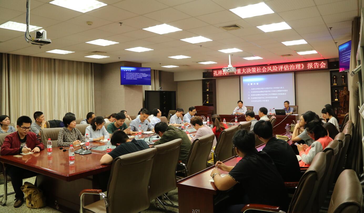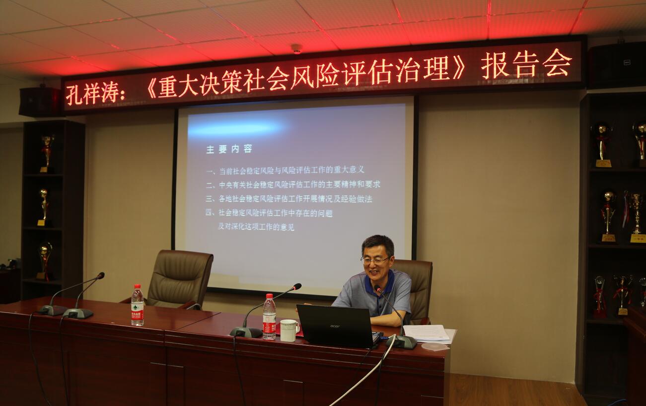 孔祥涛主任以全球蔓延的wannacry病毒、英美金融市场波动等案例为切入点,从理论产生、基本内容和国外应用实践等几个角度系统阐述了风险社会与风险理论;结合当前的中国国情,对当前社会稳定风险的类型、特点及风险评估的重大意义进行了深入分析;根据中央有关社会稳定风险评估工作的主要精神,阐明了对风险评估工作的具体要求。孔祥涛主任希望学员们在今后工作中能够更加积极地运用重大决策社会风险评估治理相关理论,自觉推进个人工作能力和单位决策水平再上新台阶。报告会融学术性与实践性于一体,现场反应强烈,赢得了师生们的一致好评。