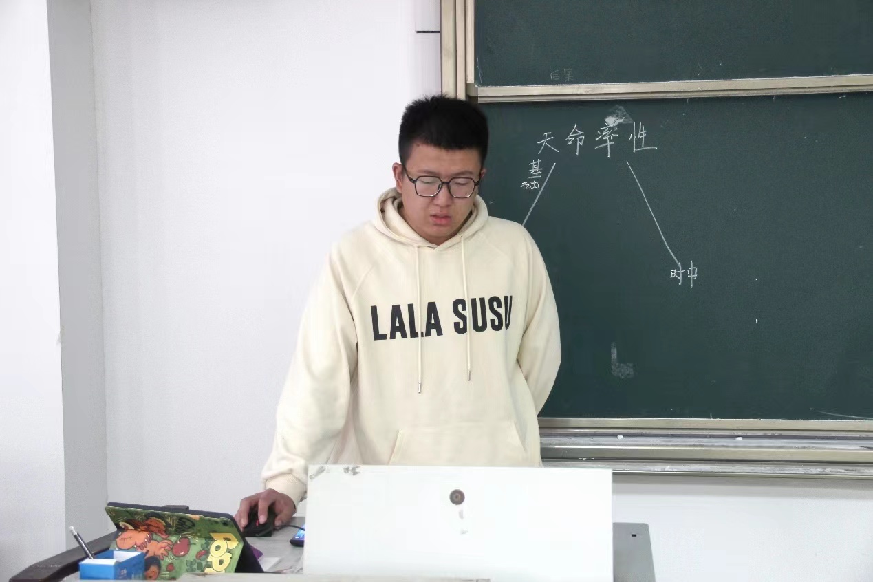 2022级何金虎同学分享了阅读《中庸章句》后关于“君子观”的思考。本书从《中庸》中的“君子”含义入手,带着“君子何来”、“君子何信”、“君子何惧”、“君子何为”四个问题,对君子“於穆不已”、“择善固执”、“戒慎恐惧”、“素位”、“成己成物”、“时中”六个方面的特点进行详细阐释,使我们对“君子“观念的历史沿革、特定意涵以及由此贯通起来的天道和人道有了深入了解。