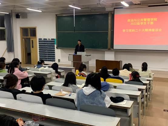 于JA105成功组织2022级学生干部培训暨学习党的二十大精神座谈会,本次会议由2022级辅导员王元如主讲,2022级全体学生干部积极参与。