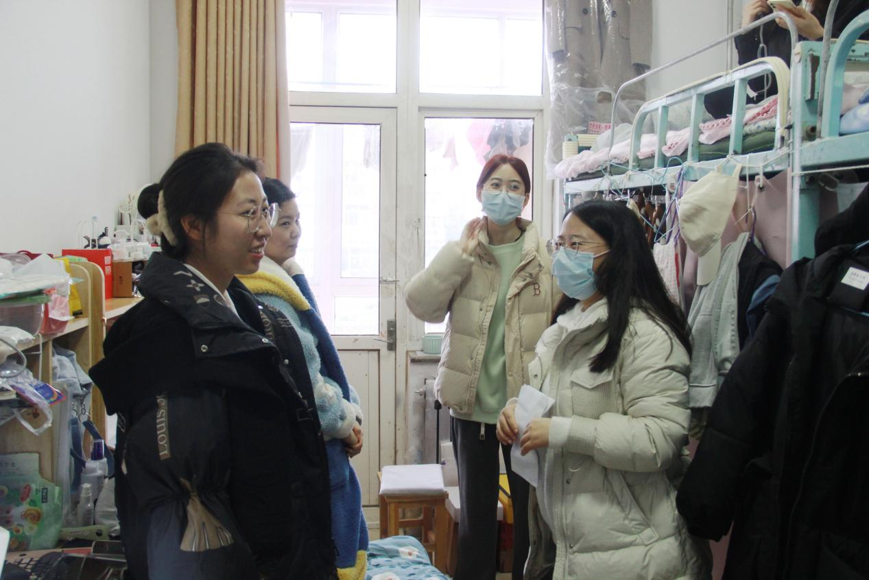 此次走访,徐莉老师主要对宿舍卫生环境、用电安全隐患以及宿舍人员离校情况进行了摸底排查,她从线上学习、用水用电等多个方面与同学们进行了深入交流,亲切的询问了同学们的学习规划,告诫同学们要强化安全用电意识,离校时及时清扫整理宿舍,并提醒同学们有困难和诉求要积极和辅导员反映,有问题及时上报。