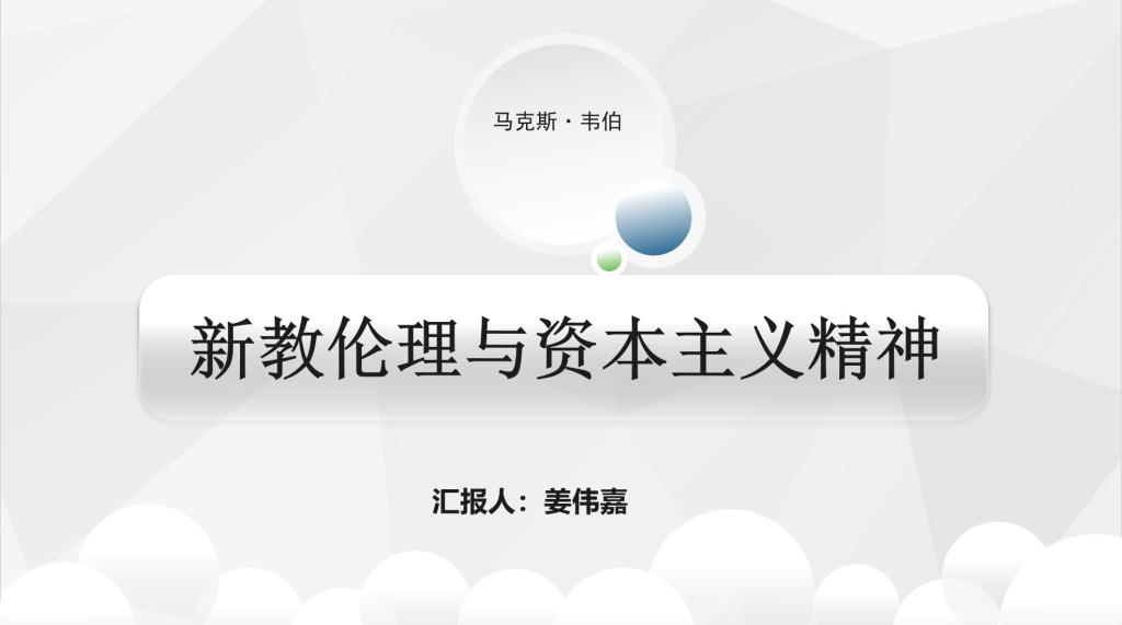 2021级姜伟嘉同学分享的书籍是马克思·韦伯的《新教伦理与资本主义精神》。这部著作是20世纪影响持续最久的著作之一,也是社会科学主要经典之一。此书是马克思·韦伯《宗教社会学论文集》的第一部分,系列专著的其他部分有:《中国宗教——儒家与道家》、《印度宗教——印度教与佛教》、《古代犹太教》以及仅有残篇的《伊斯兰教》。姜伟嘉同学对此书中的路德天职观、加尔文教德预定论、基督教新教等宗教文化进行解读,并就自身阅读感悟进行分享。