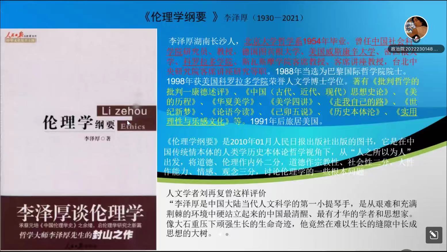 政研论坛第三十六期伦理学专业研究生读书交流会于“腾讯会议”线上平台举行。本次读书交流会邀请徐自强老师出席,2021级、2022级伦理学专业研究生积极参加。