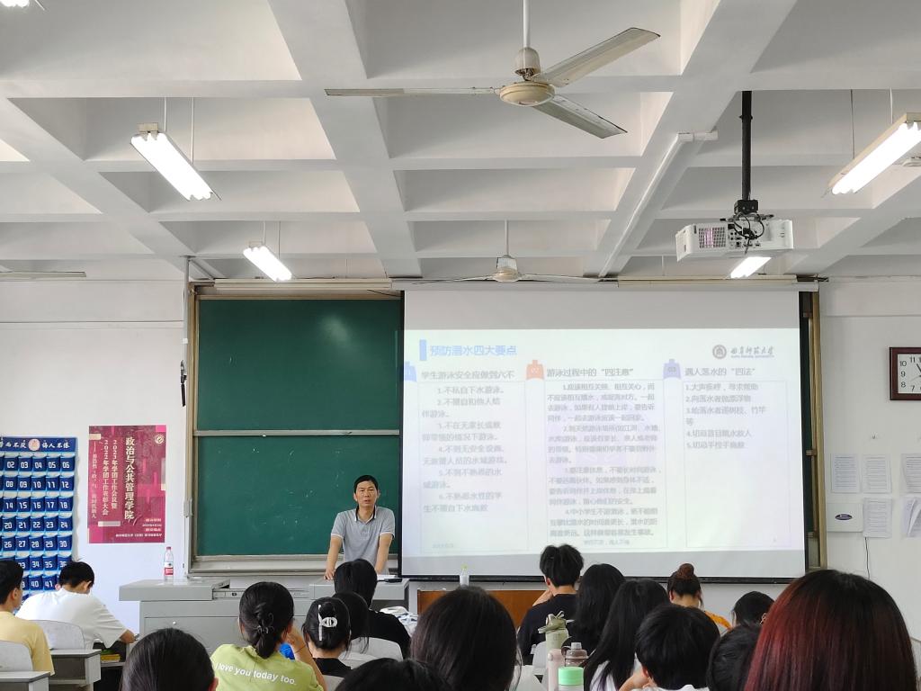 各年级各班利用主题班会多层次、多渠道地进行防溺水安全教育,包括利用网络视频向学生介绍溺水事故的危害性及严重后果;向学生介绍游泳安全知识,教学生掌握一些简单的自救办法;通过实际案例教育、引导大学生以正确的认识和科学、安全的方法参与夏季有关活动。各班都积极参,活动取得了显著成效。