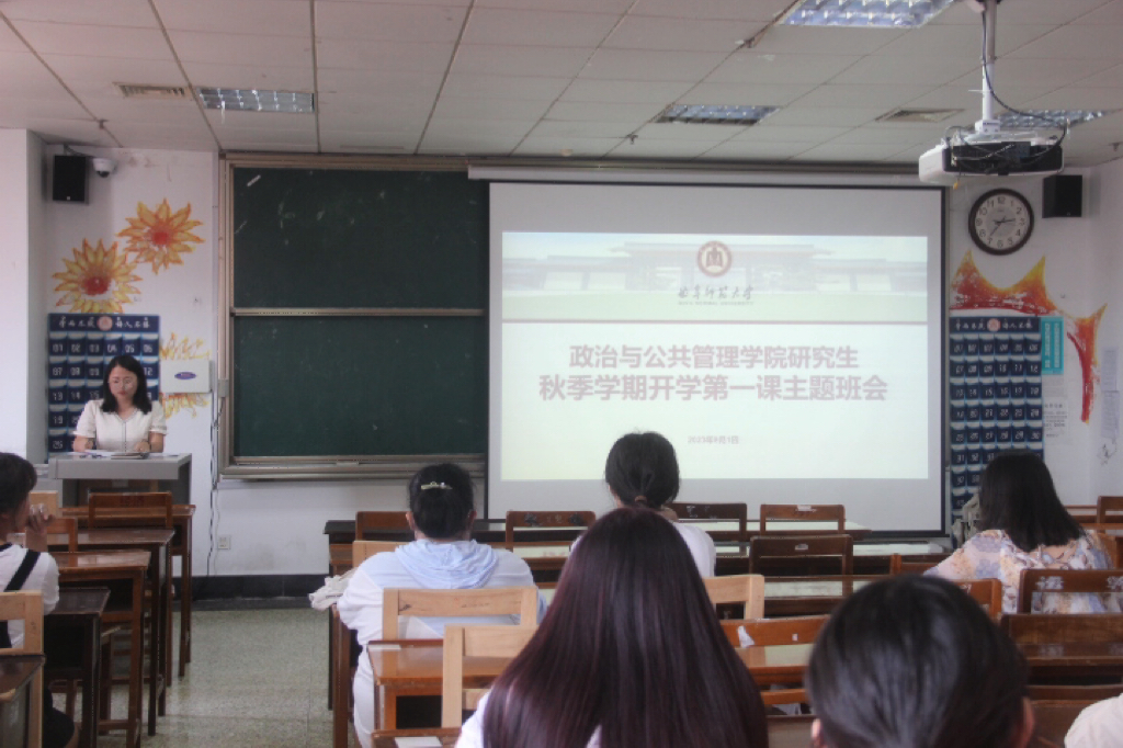 2023届硕士毕业生就业情况,鼓励同学们要向优秀学姐学长看齐,尽快从“暑假模式”进入“学习状态”,开启奋斗模式。第二,重视心理健康,关爱身心成长。学会照顾自己的情绪,自然情绪合理应对,向同学们介绍了掌握调节情绪的方法。第三,遵守研究生日常管理规定,守住安全底线。从研究生日常管理规范、意识形态安全、网络安全、宿舍安全、交通安全、人身财产安全、防溺水、抵制校园欺凌等多个方面展开,引导同学们树立安全意识,筑牢安全防线。