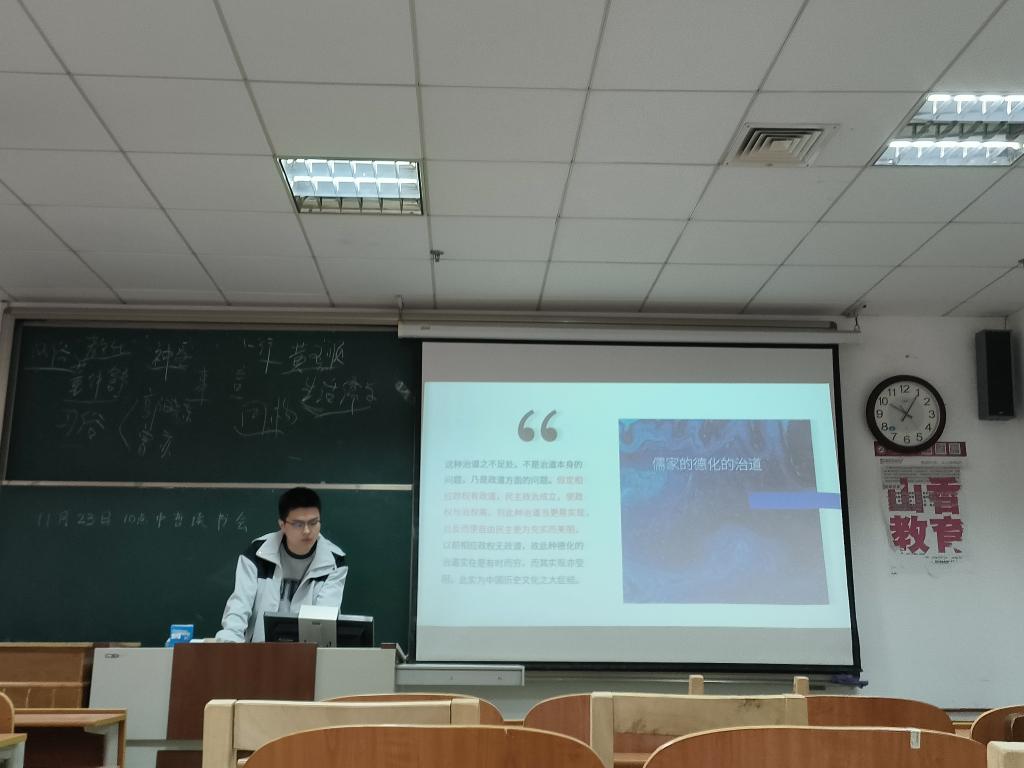 2023级孟庆龙同学分享牟宗三《政道与治道》一书作了分享报告。讨论了儒家的德化的治道,对中国现代化以及科学民主等亦予以反思,多处从思想深处默合其后知识界关注的诸多急切问题。