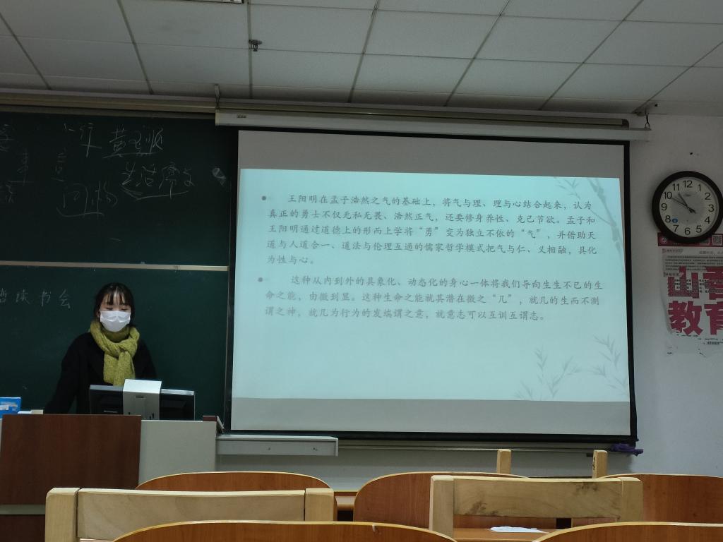 2022级苏鑫宇同学分享论文儒家论“勇”从外在依赖性到内在独立性,从勇的含义、勇的规范、勇的培养来进行讲解,分析和论述了中华传统勇德教育缺失,利己主义思潮抬头、当代青年精神生活匮乏,培养勇气的方法不止一种,在柏拉图的《理想国》中,接受了雅典以体操锻炼身体,以音乐陶冶心灵的和谐发展的教育思想。孟子也曾经谈到北宫黝和孟施舍培养勇气的方法。