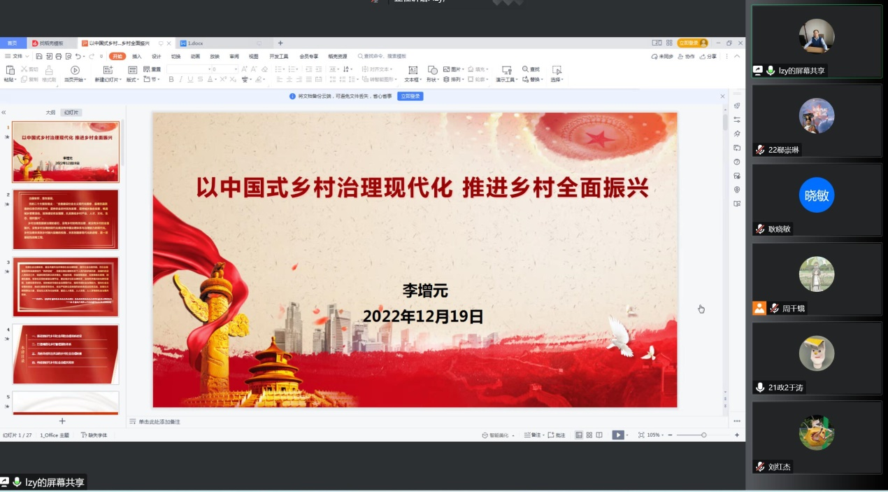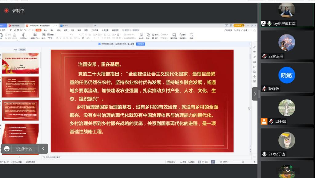 始终秉持“政苑三学”的理念,在推进乡村振兴战略中,充分发挥专业优势,助力乡村振兴,本次线上讲座的开展,使同学们深入学习领会实施乡村振兴战略的重大意义,对同学们未来的实践发展具有重要指导作用。