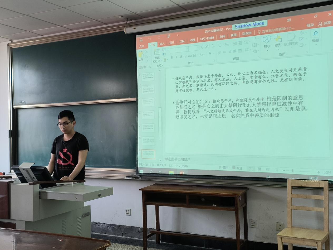 政研论坛第四十七期中国哲学研究生读书会于JC603举行。本次读书会邀请孟祥兴老师出席,2022级、2023级中国哲学专业硕士研究生积极参加。