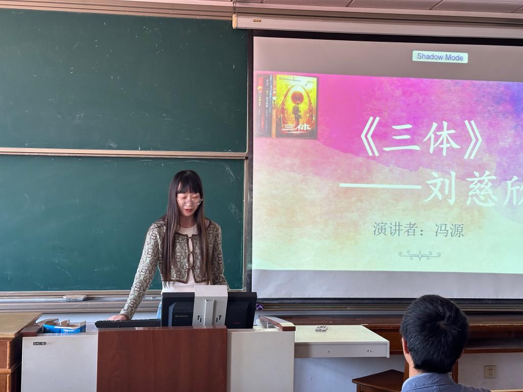 首先,2024级冯源同学就《三体》的内容进行分享。通过对本书的整体性概括和重点部分的凝练总结,并提出了问题:《三体》中的“黑暗森林法则”的哲学来源,其带给我们哪些现实的思考?《三体》能给予我们怎样哲学和人生上的启示?引发了同学们的讨论与思考。