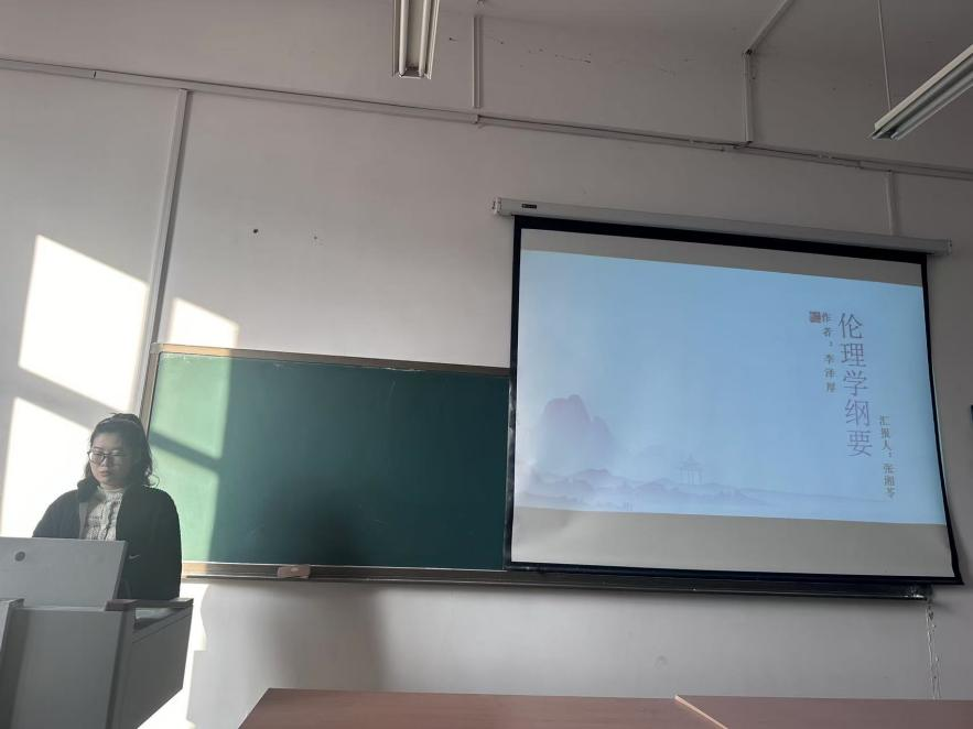 2024级张湘苓同学分享了李泽厚的《伦理学纲要》。她主要介绍了书中关于两性道德伦理的论述,探讨了在现代社会背景下,两性关系中的道德规范和伦理原则,以及李泽厚对宗教性道德的阐释,包括其起源、发展以及在人类社会中的作用。分享结束后,她提出了一个引发思考的问题:"在现代社会中,宗教性道德是否有必要存在?"这个问题激发了同学们对现代社会中宗教、道德与伦理关系的广泛讨论。