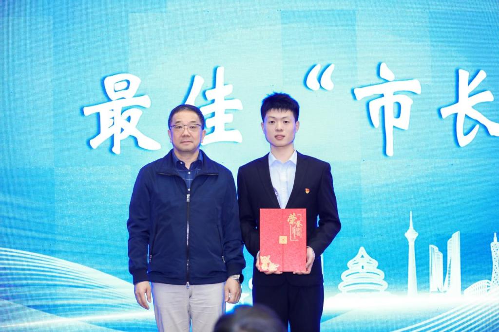 学生李文昊斩获本届大赛“最佳市长”。脱裤吧