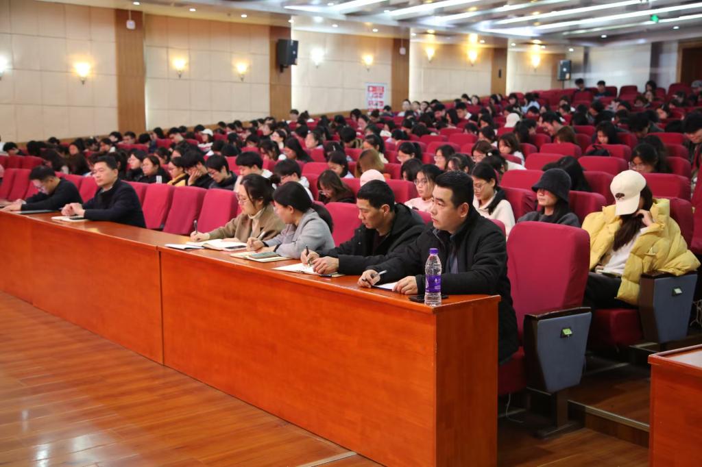 于图书馆报告厅成功举办“生命与安全教育系列心理健康教育专题报告会”。此次活动特邀日照市精神卫生中心心理咨询中心科主任张廷侠担任主讲,日照市精神卫生中心心理医生迟佰强、学院党委副书记张忠凯、学院全体辅导员及全体同学共同参加。本次报告会由学院团委书记马腾主持。