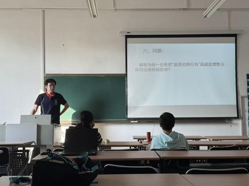 24级马银隆同学分享的书目是《单纯理性限度内的宗教》,对康德为何一定要把“最恶劣的行为”说成是理性主体自由选择的结果这一问题进行了讨论,他提出这种恶不是天生的必然,而是人类自由选择的后果。