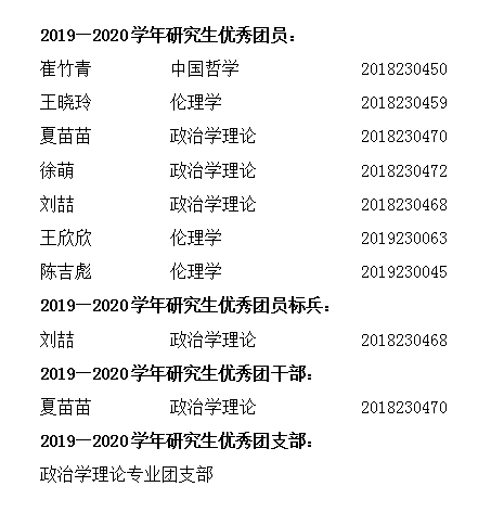 脱裤吧 严格按照《脱裤吧 研究生共青团评优办法》的规定和要求,按照“公平、公开、公正、公示”的原则,脱裤吧 组成研究生共青团评优工作小组进行评审,现将2019—2020学年研究生共青团评优初选人员名单予以公示: