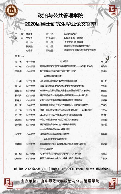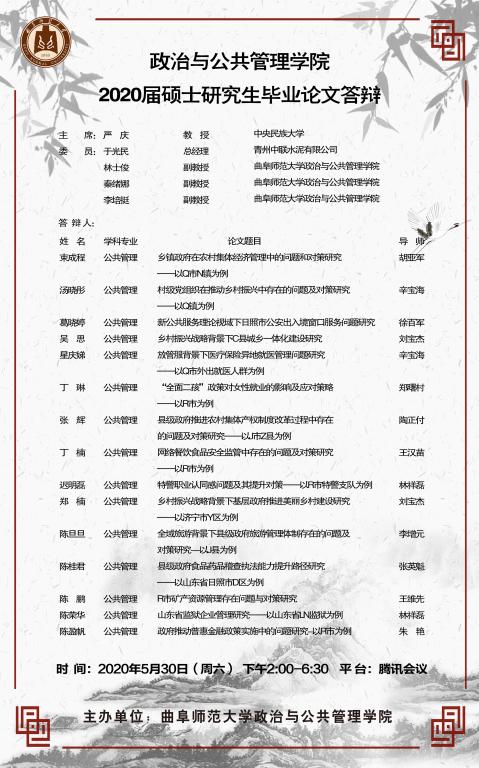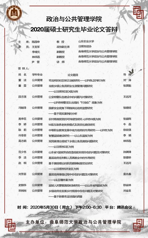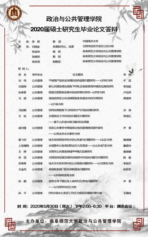 脱裤吧 2020届学术型硕士研究生学位论文答辩公告