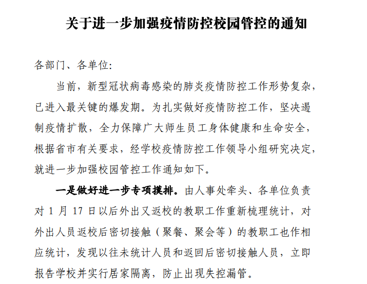 众志成城,战胜疫情通知系列之十:关于进一步加强疫情防控校园管控的通知