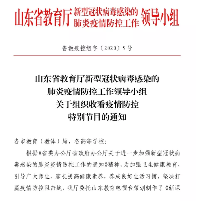 众志成城,战胜疫情通知系列之八:关于组织收看疫情防控特别节目的通知
