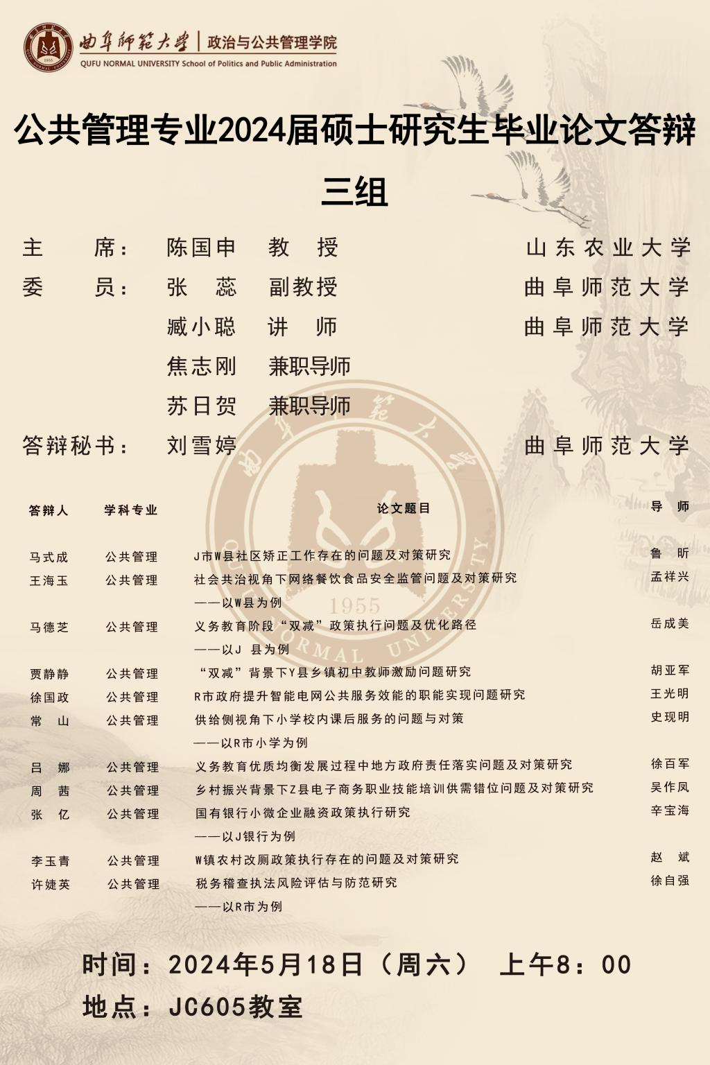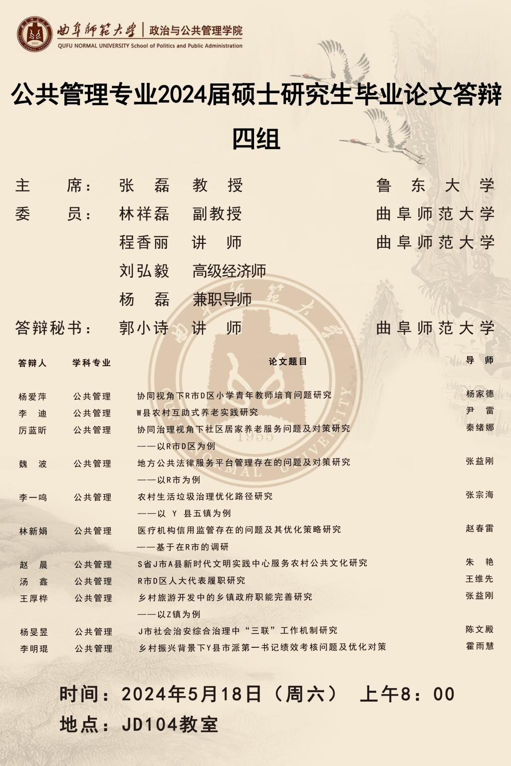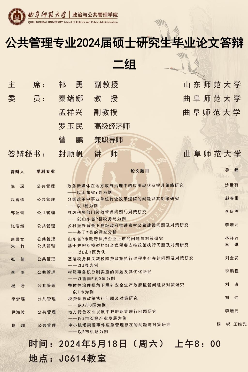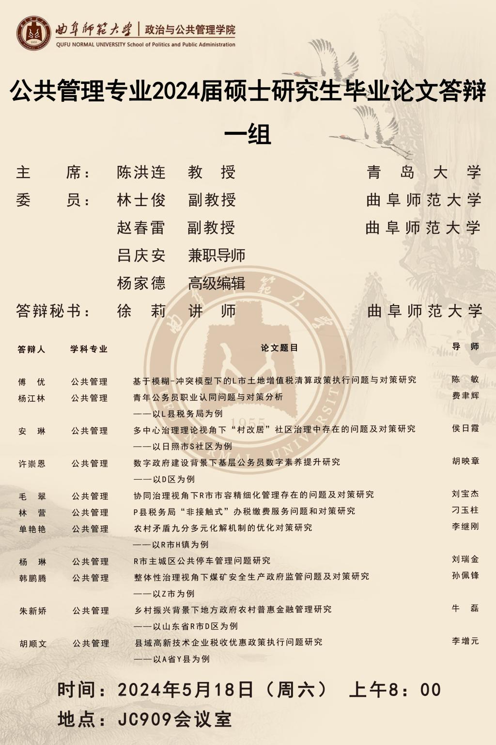脱裤吧 2024届公共管理硕士研究生学位论文答辩公告