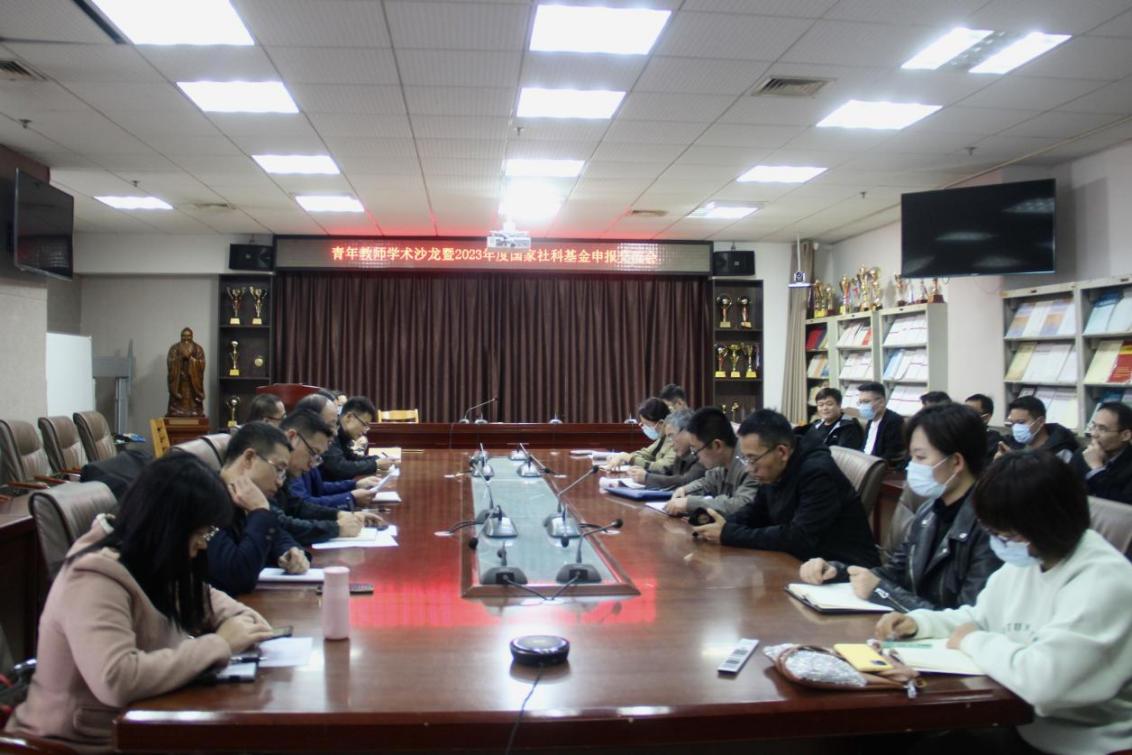 于JC909会议室顺利召开青年教师学术沙龙暨2023年度国家社科基金项目申报交流会,学院中青年教师参加会议,会议由副院长李增元主持。