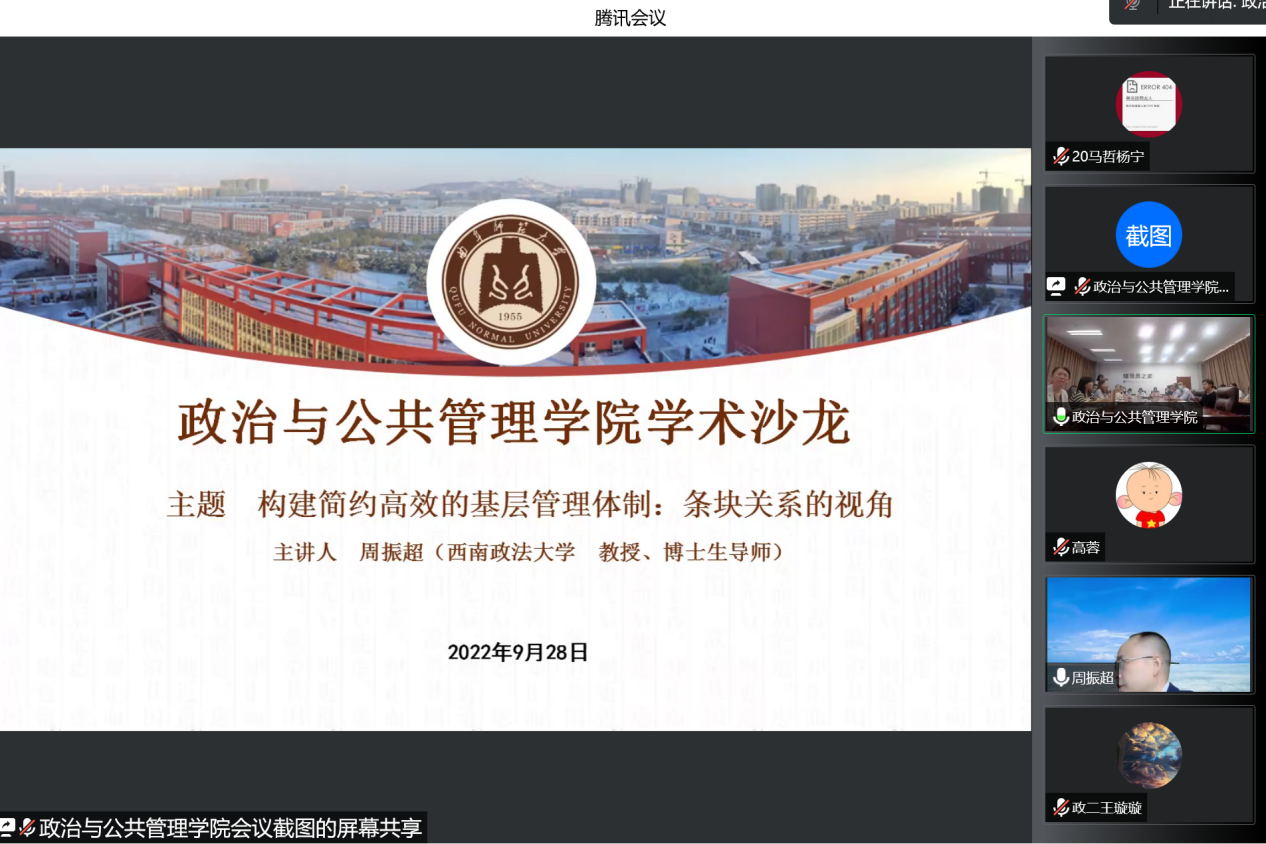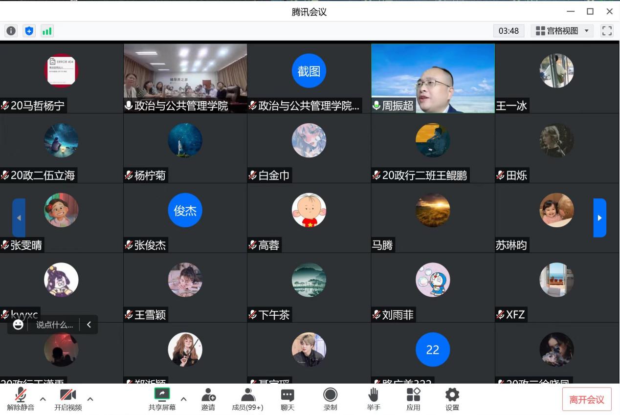 师生做专题报告,学院青年教师与政治学与行政学专业学生分别于“线上”和“线下”参加,本次学术沙龙由副院长李增元主持。
