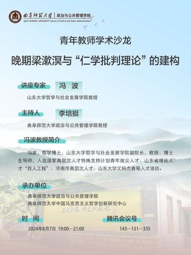 于线上举行“晚期梁漱溟与仁学批判理论的建构”专题讲座,学院邀请国家高层次人才特殊支持计划青年拔尖人才、山东省理论人才“百人工程”、山东大学哲学与社会发展学院副院长冯波教授在线作专题报告。讲座由脱裤吧