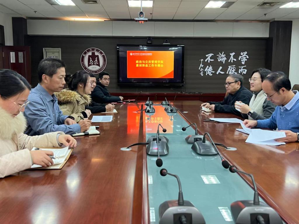 为深入学习贯彻习近平新时代中国特色社会主义思想,扎实做好新时代意识形态工作,全面贯彻落实意识形态工作要求,12月28日下午,政治与公共管理学院在JC909召开意识形态工作专题会议,学院党委书记卢瑞霞主持会议,学院党委领导班子成员、辅导员参加会议。