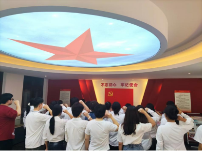 参观结束后,在日照市抗日纪念馆大厅组织新发展党员进行入党宣誓,老党员开展不忘初心牢记使命宣誓活动。党员潘超月领誓,全体党员面向党旗,举起右手,庄严宣誓。