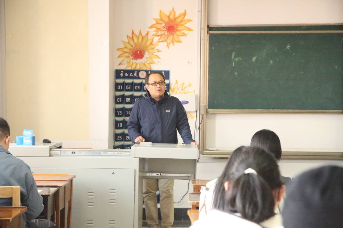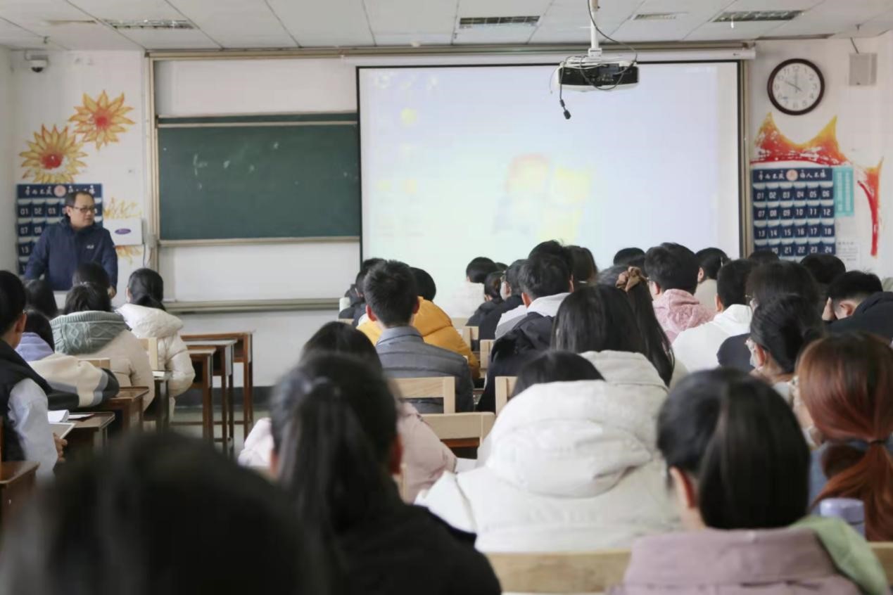 副院长林士俊给2018级考研同学进行考前辅导,18级辅导员王元如主持,2018级全体同学积极与会。