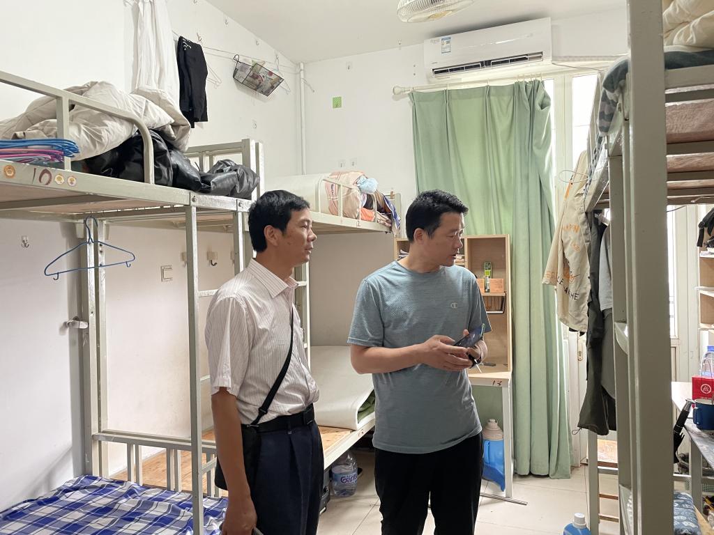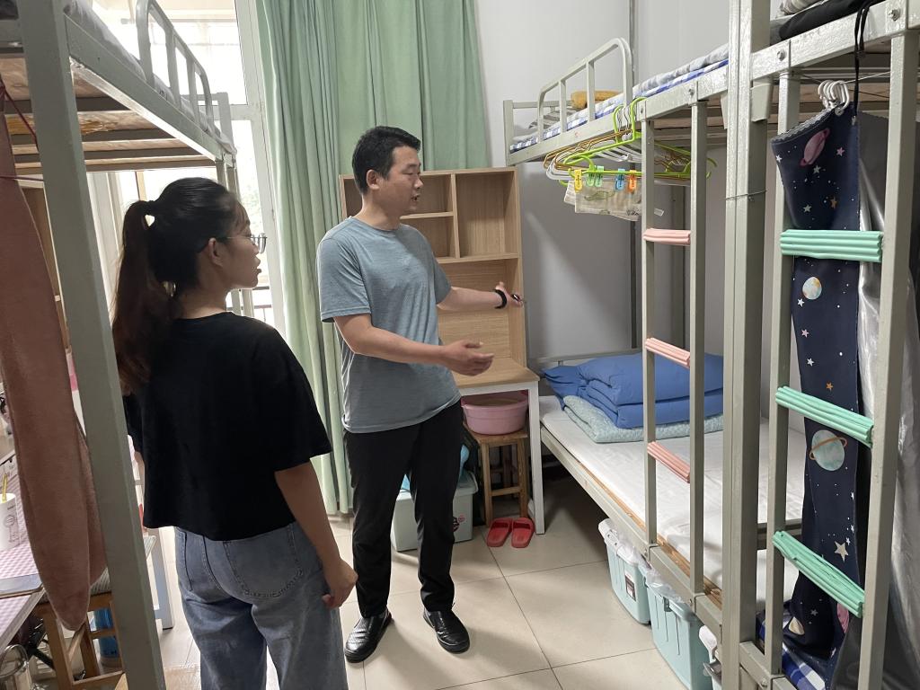 为保证暑期各项工作顺利开展,确保暑期学生宿舍的安全卫生情况。7月16日下午,脱裤吧 进行暑期宿舍安全卫生检查。马克思主义学部党委副书记张忠凯、脱裤吧 团委书记王元如、2020级辅导员耿晓敏、张文静走进园区,前往各级学生宿舍进行安全卫生检查、走访未离校学生。