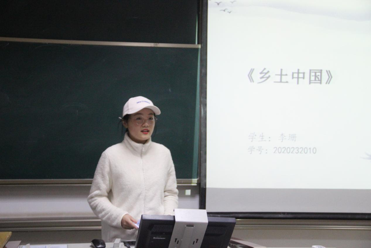 2020级李珊同学就费孝通老先生的《乡土中国》为大家做了分享。首先是对本书作者和全书内容做了简要概括。其次,从时间阻隔和空间阻隔这两大因素详细论述了书中对文字下乡这一观点的认识与理解。只有当中国社会乡土性的基层发生了变化之后,也要考虑到文字和语言对人们的需要,文字才能下乡。最后,这本书是费老先生将自己的经历与感悟与乡村实践融合在了社会学这一偌大的智慧体系中,将中国乡村社会中的一幕幕具体情境抽象成一些符号和概念。乡土中国,是乡村社会生活习俗背后的文化沉淀与精神承载。