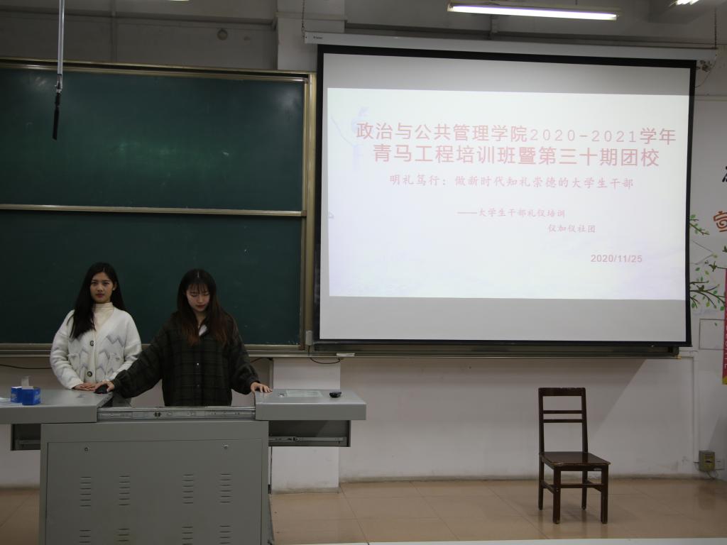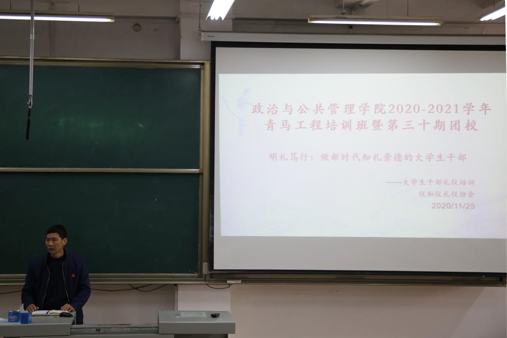 2020-2021学年青马工程培训班暨第三十期团校第三讲于JA302举行。本次活动以“明礼笃行:做新时代知礼崇德的大学生干部”为主题,由脱裤吧