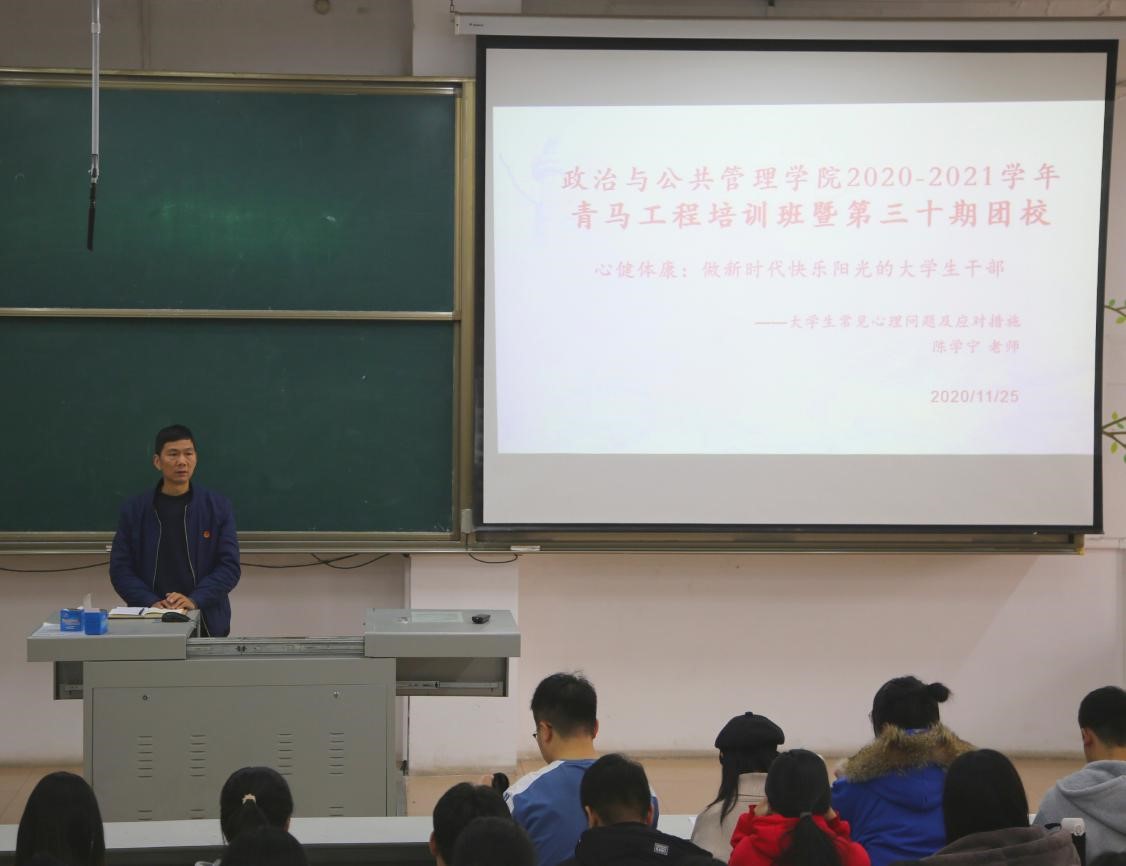 2020—2021学年青马工程培训班暨第三十期团校第二讲于JA302举行,本次培训会以“心健体康:争做新时代快乐阳光大学生干部”为主题,由脱裤吧