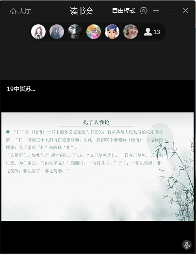 本期政研论坛读书交流会围绕中国哲学相关书目及人物展开讨论。首先,由2019级苏璐同学为大家分享孔子的人性论。主要对孔子人性论的“性相近”、“习相远”、“唯上知与下愚不移”三个方面进行了详细讲解。儒家学派的人性论一直是众多学者研究的热点,但目光多偏集于孟荀,孔子对人性的论述虽远不及孟荀系统,但在中国古代思想史上,最早提出人性问题的当属孔子。通过分享交流,同学们对孔子的“人性论”有了更多的感悟。姚老师针对苏璐的分享谈到孔子确实没有明确地讲是“性善”还是“性恶”,在儒家的思想上最早提出“性善”的是孟子,一些学者根据材料追溯更多认为孔子的思想偏于性善,性本身其实是心,泛指一切人或者物的本性属性,后来儒家把性和善恶联系起来。