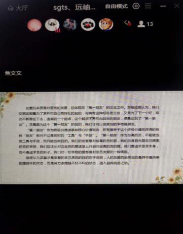 焦文文正在进行读书交流分享