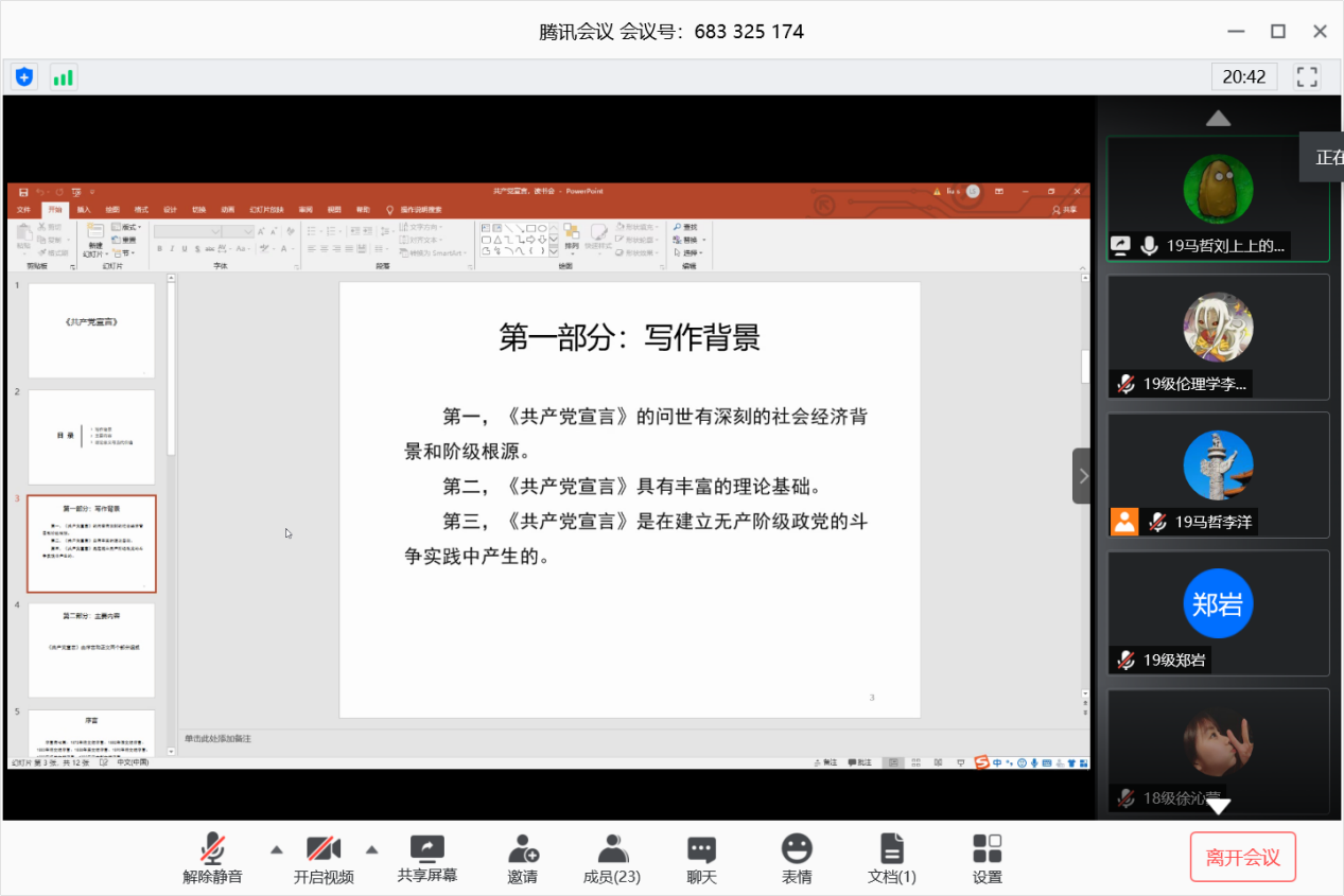 政研论坛第十五期马克思主义哲学专业研究生读书交流会在腾讯会议上举行,脱裤吧