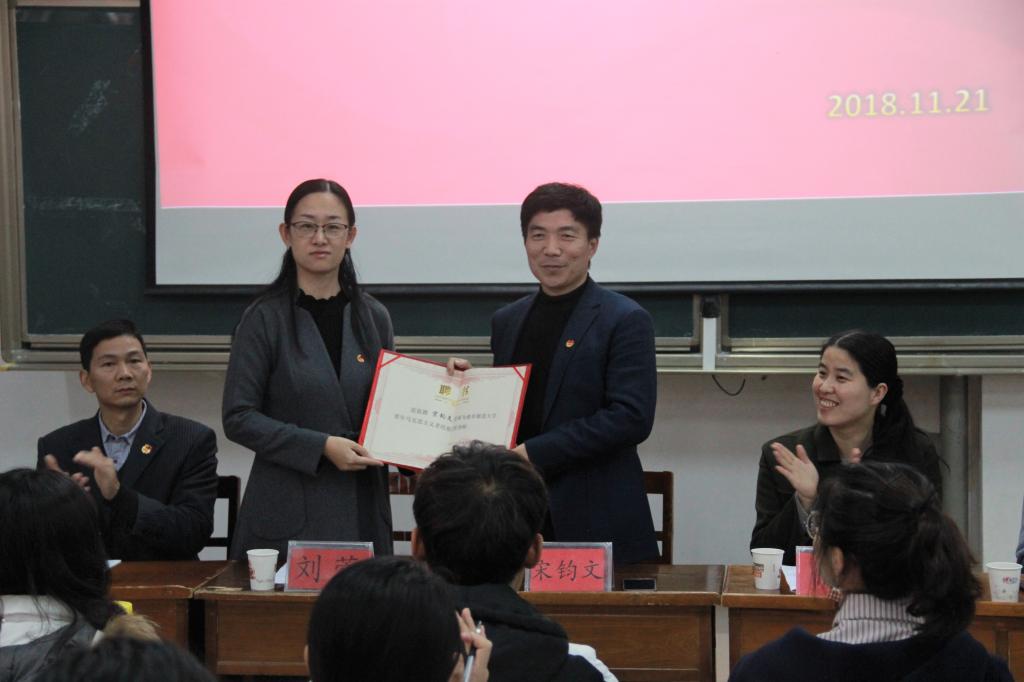 仪式在全体成员嘹亮的国歌声中拉开帷幕。刘蓉为开班仪式致辞,她充分肯定马克思主义学部长期以来各项工作的突出成果和贡献,勉励培训班同学牢记使命,直身正道、砥砺前行,成为同学们想得起、靠得住、信得过的优秀学生干部,努力成长为合格的青年马克思主义者。为进一步办好“青马工程”培训班,对培训班课程建设进行指导,刘蓉代表学校团委为宋钧文老师颁发“脱裤吧