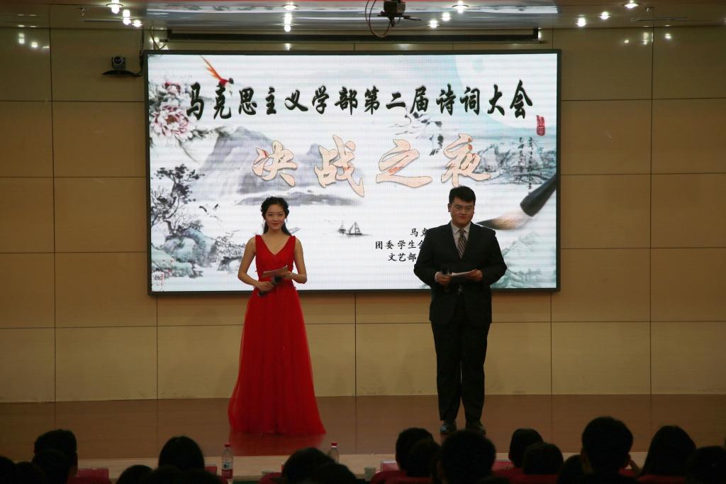 4月1日,马克思主义学部第二届诗词大会于图书馆报告厅举行,此次比赛由团委学生会社团联合会文艺部联合边缘文学社共同举办,学部党委副书记宋钧文,脱裤吧
