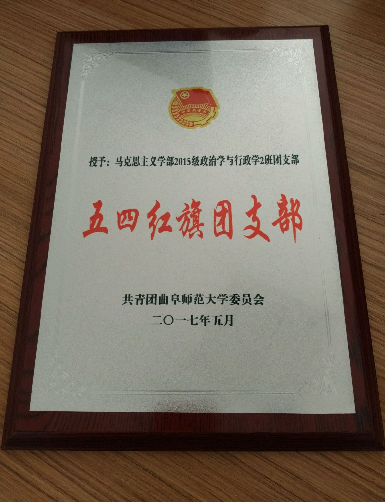 委员会主办的“五四红旗团支部”评选中,我部2015级政治学与行政学二班、2015级行政管理学二班团支部荣获2016年度“五四红旗团支部”称号。