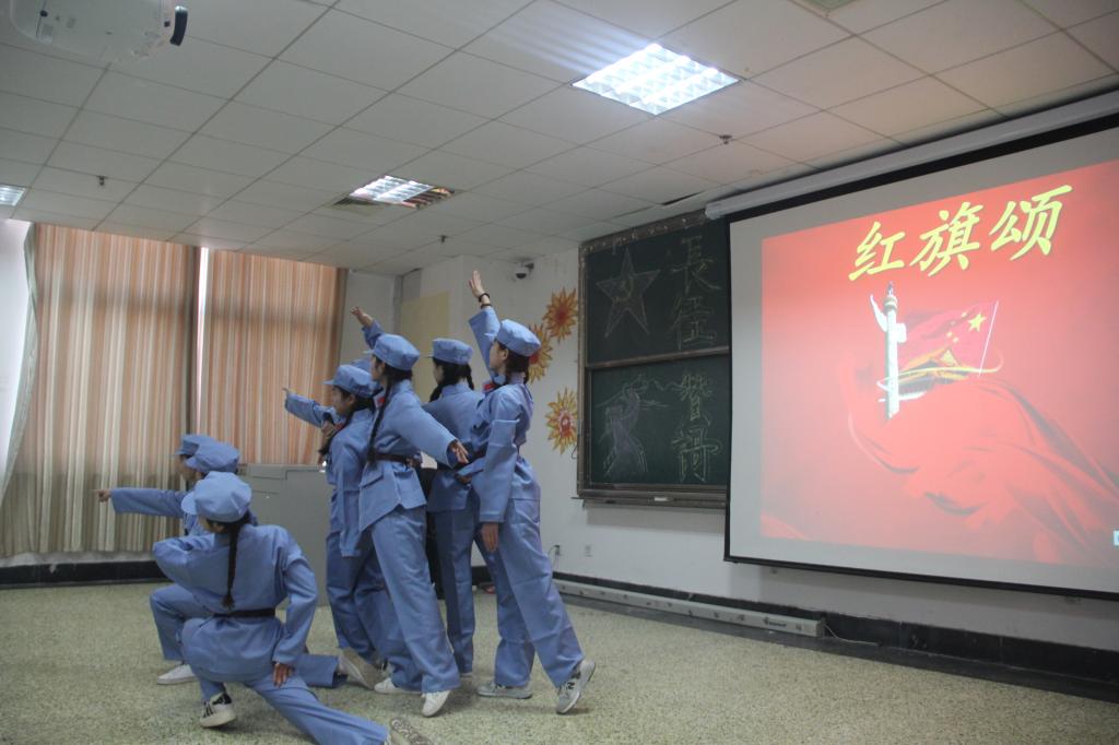 本次晚会旨在回顾中国共产党和工农红军谱写的壮丽史诗,追忆伟大长征精神,激励同学们继往开来、携手共进。节目精美繁多,包含歌舞、诗朗诵、演讲、话剧等多种形式,呈现出饕餮视听盛宴。开场舞《红旗颂》以“红色娘子军”飒爽英姿的形象展现出祖国的繁荣昌盛,寄托了对中华民族伟大复兴的美好意愿;沂蒙小调点缀下的《映山红》,歌调珠圆玉润,别样地诠释了对红军战士的无限热爱与不舍情怀;话剧《丰碑》感人至深,以白描手法表现出红军心向人民群众、不怕艰难险阻的革命友谊情怀;压轴合唱曲目“红歌串烧”以恢宏气势讴歌伟大长征精神,点燃全场氛围。同学们精彩的表演赢得在场师生喝彩!美好的时光总是显得短暂,在一片欢声笑语之中,本次晚会圆满落幕。