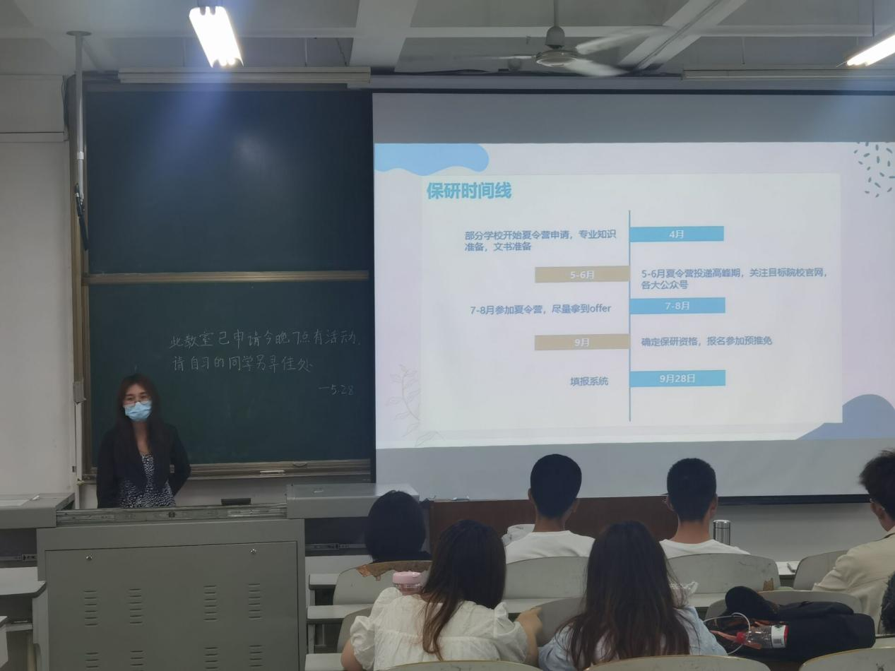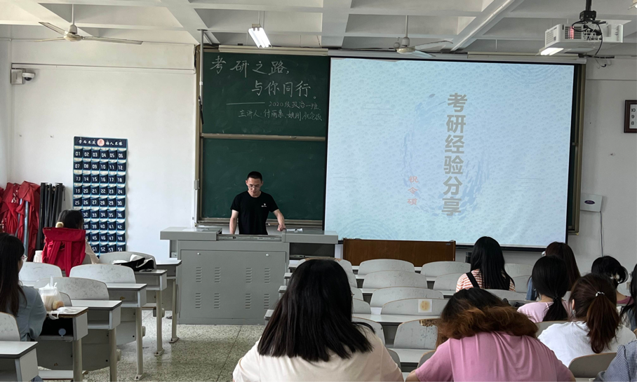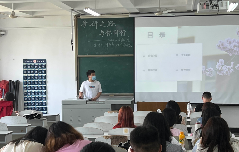 在此次学习经验交流会中,学长们结合自身经历,契合同学们实际,重点从学习习惯养成、学习方法的转变、学习目标的确定、考研院校及专业选择几点出发介绍经验方法。学长们通过分享自己的学习经历,向同学们说明了养成良好学习习惯的重要性,鼓励同学们要在学习中永远饱含热情,在日常学习中打好基础,保持良好的心态,在学习考试知识的同时充分阅读文献,增加自身的知识储备量,并强调了制定科学备考计划的重要性。会议最后,学长们表达了衷心祝福,祝愿2020级学生积极把握机会,不断提升自我。
