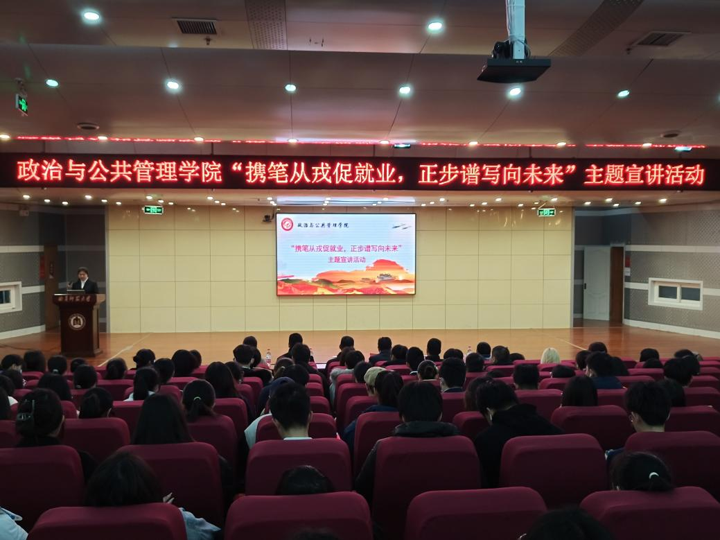 于图书馆报告厅开展“携笔从戎促就业,正步谱写向未来”主题宣讲活动。脱裤吧