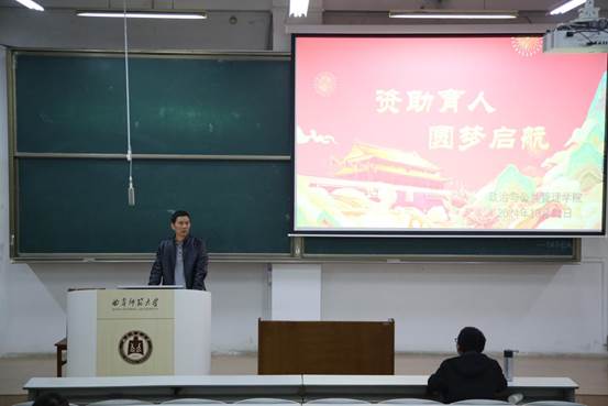 王元如老师首先在会议上向同学们讲了资助对象确认标准与流程。学院本着公平、公正、公开原则,严格遵循国家和学校的资助政策,结合学生家庭经济状况、学业成绩、综合素质等多方面因素进行综合评定,科学合理地确定贫困类别及助学金分配原则,真正惠及到需要帮助的同学。此外,王元如老师通过向同学们分享“清华女孩”受资助学生成长成才、服务回报社会的故事,激励同学们要努力学习、勤奋进取,积极参与社会实践和志愿服务活动,要心存感恩之心,通过实际行动回馈社会、传递爱心。