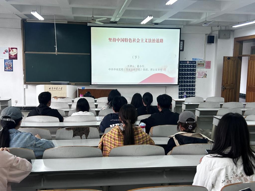 入团积极分子第二次培训在B103召开。组织部组织培训,入团积极分子积极参与,并认真学习了“坚持中国特色社会主义法治道路”、“以习近平法治思想全面推进依法治国”、“在徘徊中前进和实现伟大的历史转折”以及《中国共产主义青年团纪律处分条例(试行)》。通过本次专题学习,入团积极分子不仅深入了解了新时代全面依法治国的战略意义和历史背景,体会到中国特色社会主义法治体系的制度优势,同时也系统掌握了团章团规的基本内容与组织纪律要求,增强了对团组织的认同感与归属感。此次培训进一步坚定了同学们听党话、跟党走的信念,强化了作为新时代青年团员的责任意识与使命担当。