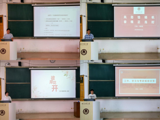 论坛现场,学长们各展所长。王志超师哥凭借自身优势,结合真实案例,细致拆解学生项目申请书的制作要点,为同学们参与竞赛筑牢基础;姚同昆师哥从学习、生活、未来三个维度出发,传递成长经验,为师弟师妹们点亮前行灯塔;王梦雪师姐聚焦学生工作、日常学习与考研准备,着重梳理考研时间线,分享实用备考书目,干货满满;庄妍师姐则以保研视角切入,讲解优质简历打造、学术论文撰写技巧,更探讨学习与生活的平衡智慧,全方位赋能师弟师妹。