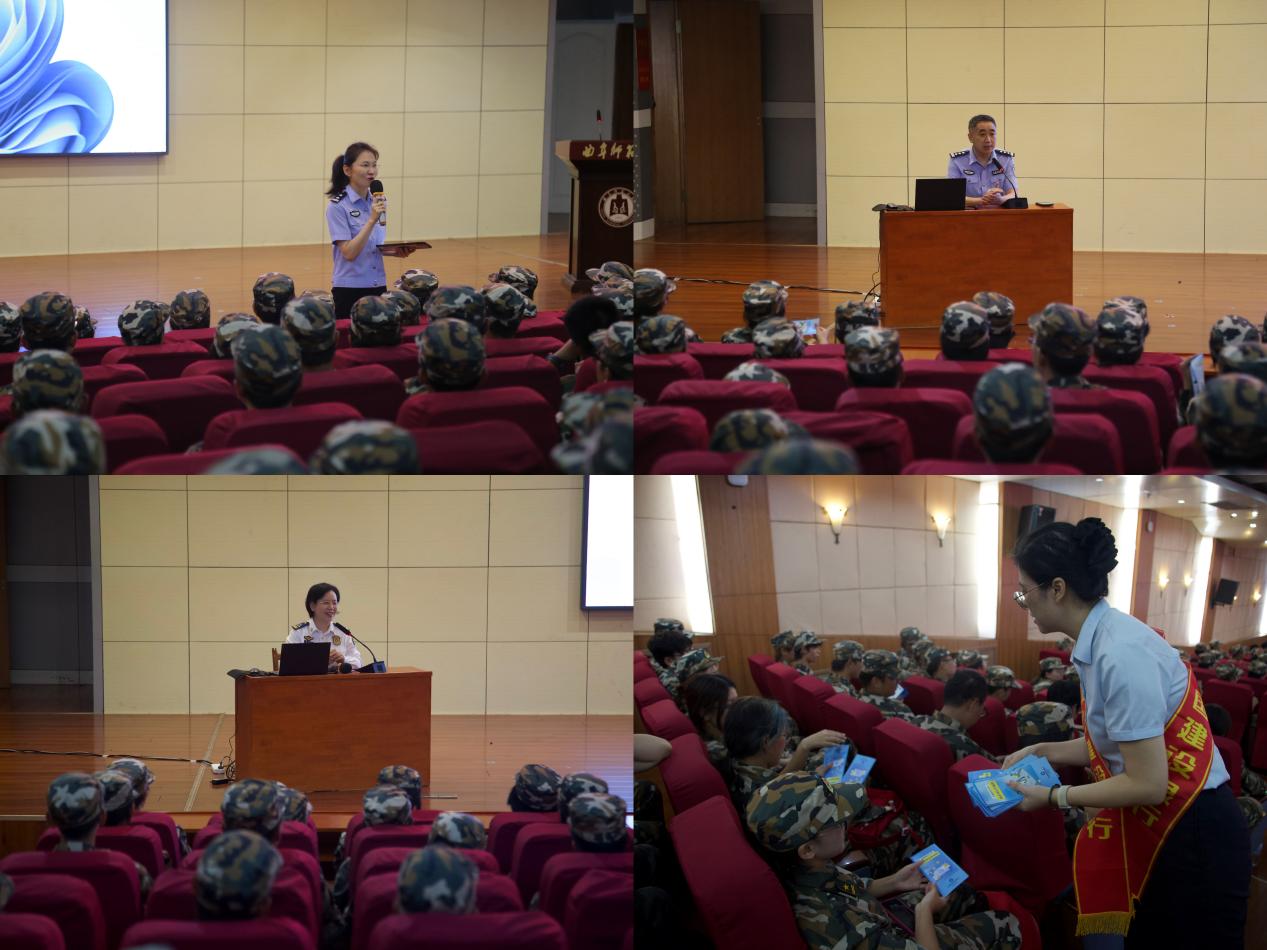 活动分三大板块有序开展。第一板块为反诈宣传,由女警官杨丽主讲。她结合高校学生受骗案例,系统梳理了电商诈骗的常见类型与典型套路,通过列举案例,让新生直观了解诈骗分子的作案逻辑,提升对诈骗行为的辨别能力。第二板块聚焦反诈应对,陈磊老师从“如何快速识别诈骗信号”“遭遇诈骗后的正确处理流程”等方面展开讲解,为新生提供了一套可操作的反诈应对指南。第三板块围绕消防安全展开,陈长红老师详细讲解了校园火灾的常见诱因、日常防火注意事项及火灾发生后的自救逃生要点。