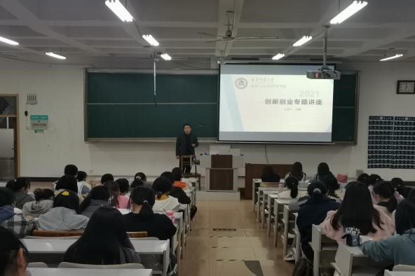 于JA206开展2021年创新创业专题讲座。学院辅导员马腾担任主讲人,2021级全体同学参与。