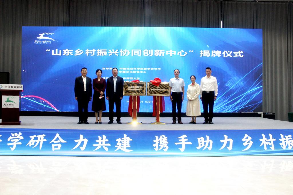 、泗水县人民政府、中佳海蓝企业管理(山东)集团有限公司共建的“山东乡村振兴协同中心”揭牌仪式在泗水县尼山鹿鸣举行。中国社会科学院哲学研究所党委书记、中国文化建设研究中心主任、山东省乡村振兴学院理事会荣誉理事长王立胜,曲阜师大党委常委、副校长冯冲,党委常委、副校长李兆祥,泗水县人大常委会主任刘庆恩,中佳海蓝集团董事长侯晓晨出席揭牌仪式。脱裤吧