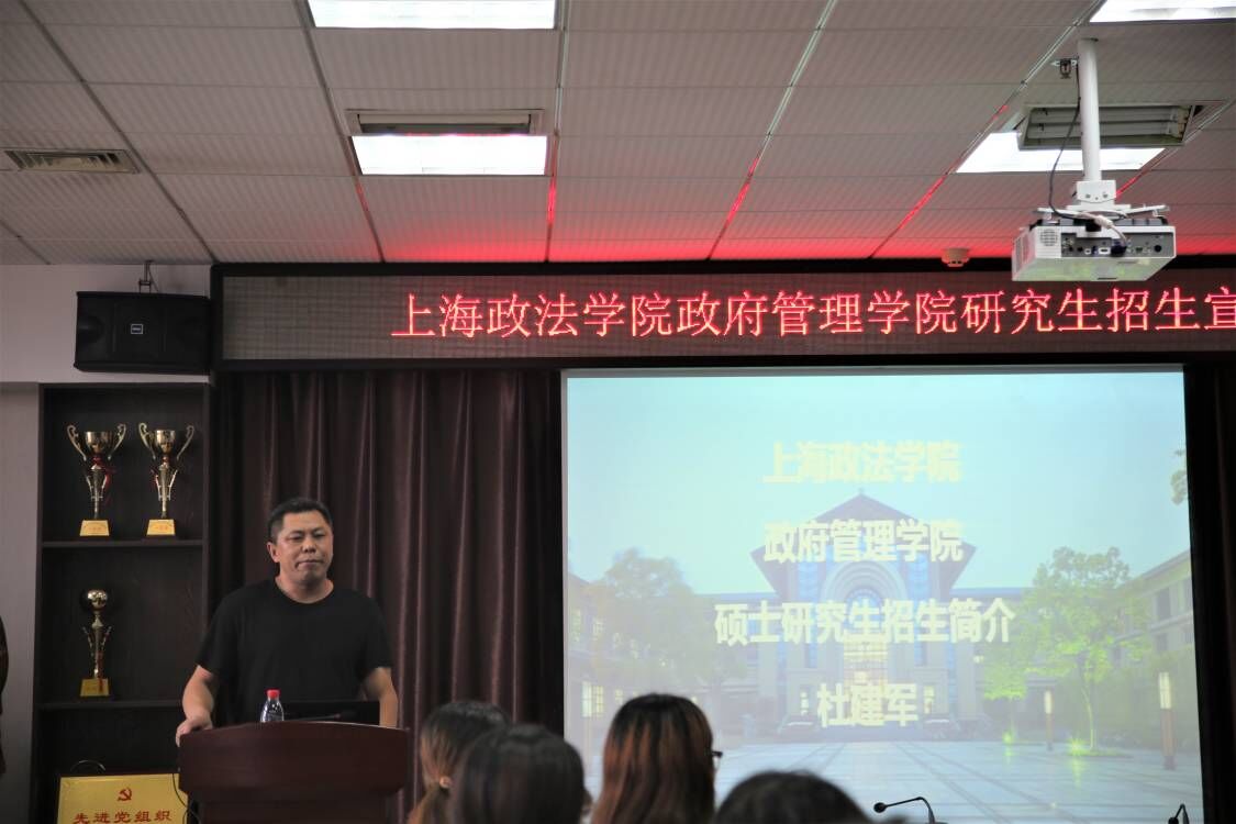 本次会议共分为两个阶段,第一阶段由上海政法学院政府管理学院杜建军老师进行研究生招生宣讲,杜老师首先分析了考研现状以及现阶段所面临的考研形势,随后,介绍上海政法学院开设专业状况、师资优势、招生与培养特色等相关内容,并结合学院特色为同学们讲解相关专业的课程设置、对外交流等方面内容,最后,同学们积极发言,提问考研相关问题,杜老师积极为同学们答疑解惑。第二阶段,脱裤吧